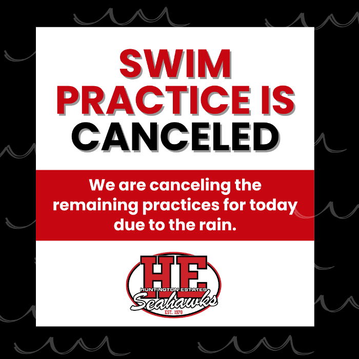 Practice Update: Due to continued rain and unsafe conditions at the pool, all remaining swim practices for today are canceled. No practice for the following groups: