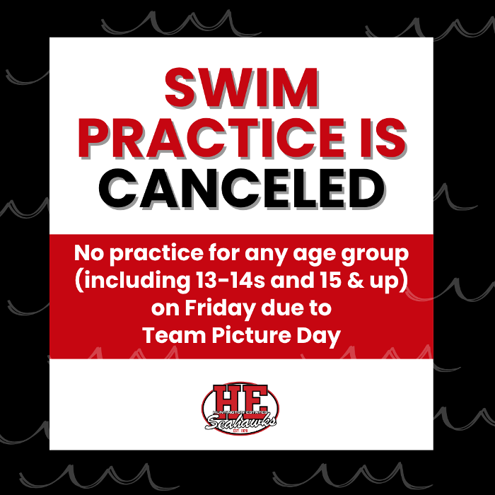 Today (Friday) is HEST Team Picture Day, and there will be NO morning practice for any swimmers—this now includes the 13-14s and 15 & up, whose practice has officially been CANCELED.