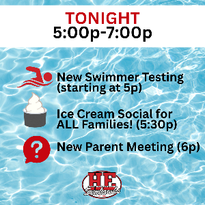 Big Night at the Pool – Happening Tonight! Join us at the pool this evening for a fun and important kickoff to the swim season! New Swimmer Testing: 5:00–7:00 PM If your swimmer is new to the team, they'll need to attend a brief evaluation during this time. Learn more about what to expect in our New Swimmer FAQs New Parent Meeting (Open to All Parents!): 6:00 PM Hosted by our co-presidents, Katie Mills and Colleen Doyle, this meeting is a great chance to meet other families, get...