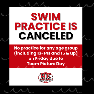 Today (Friday) is HEST Team Picture Day, and there will be NO morning practice for any swimmers—this now includes the 13-14s and 15 & up, whose practice has officially been CANCELED. Here’s the Picture Day schedule: Arrive no later than 8:45 AM Enjoy a light breakfast Team photo at 9:00 AM sharp followed by individual photos Be sure to wear your team suit and bring those smiles!